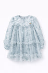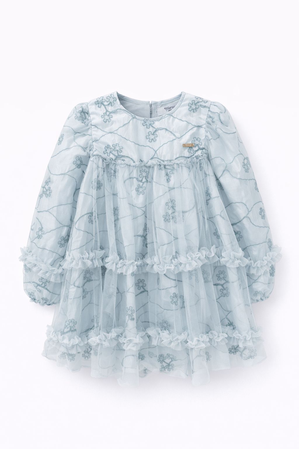 Enhanced with airy tulle tiers and long sleeves for an elegant, flowing silhouette.